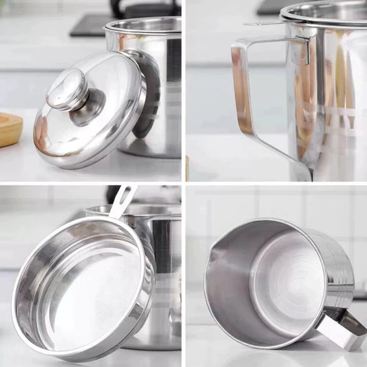 1.3L Stainless Steel Oil Pot Strainer Oil Storage Can Lid Mesh Filter Kitchen Cooking Oil Filter Cup